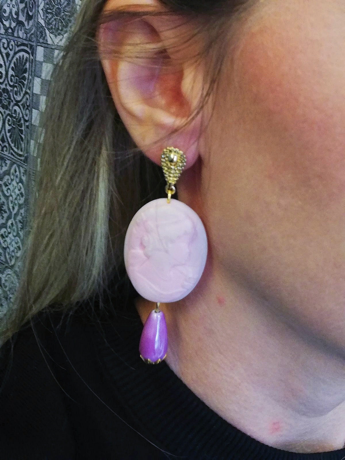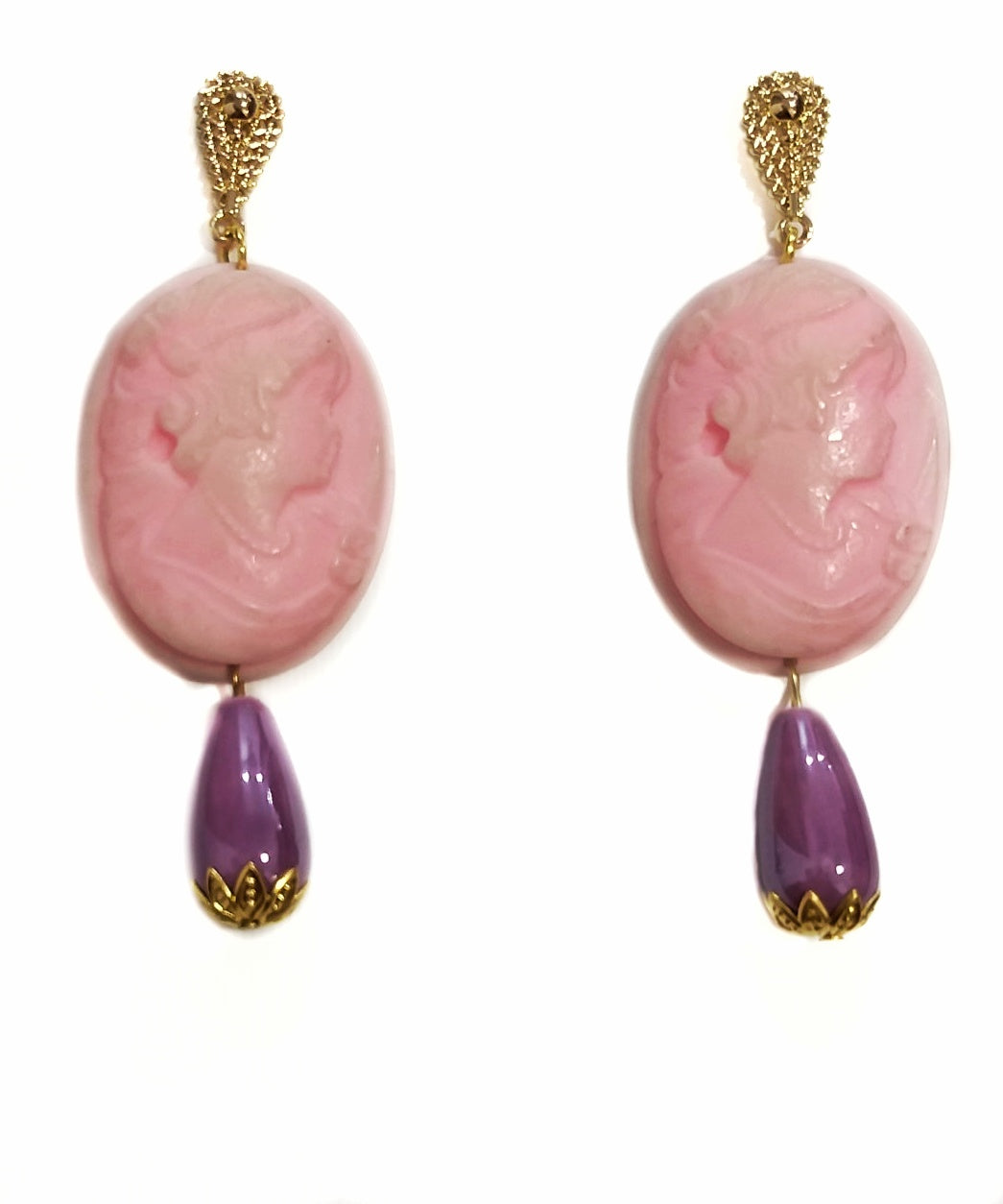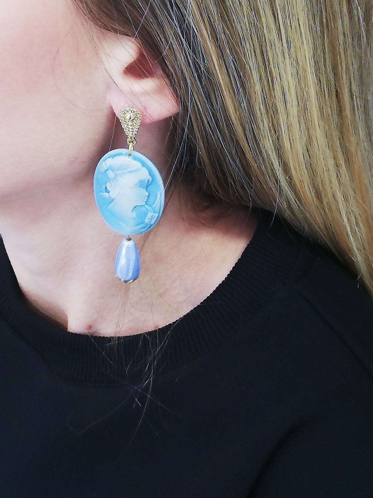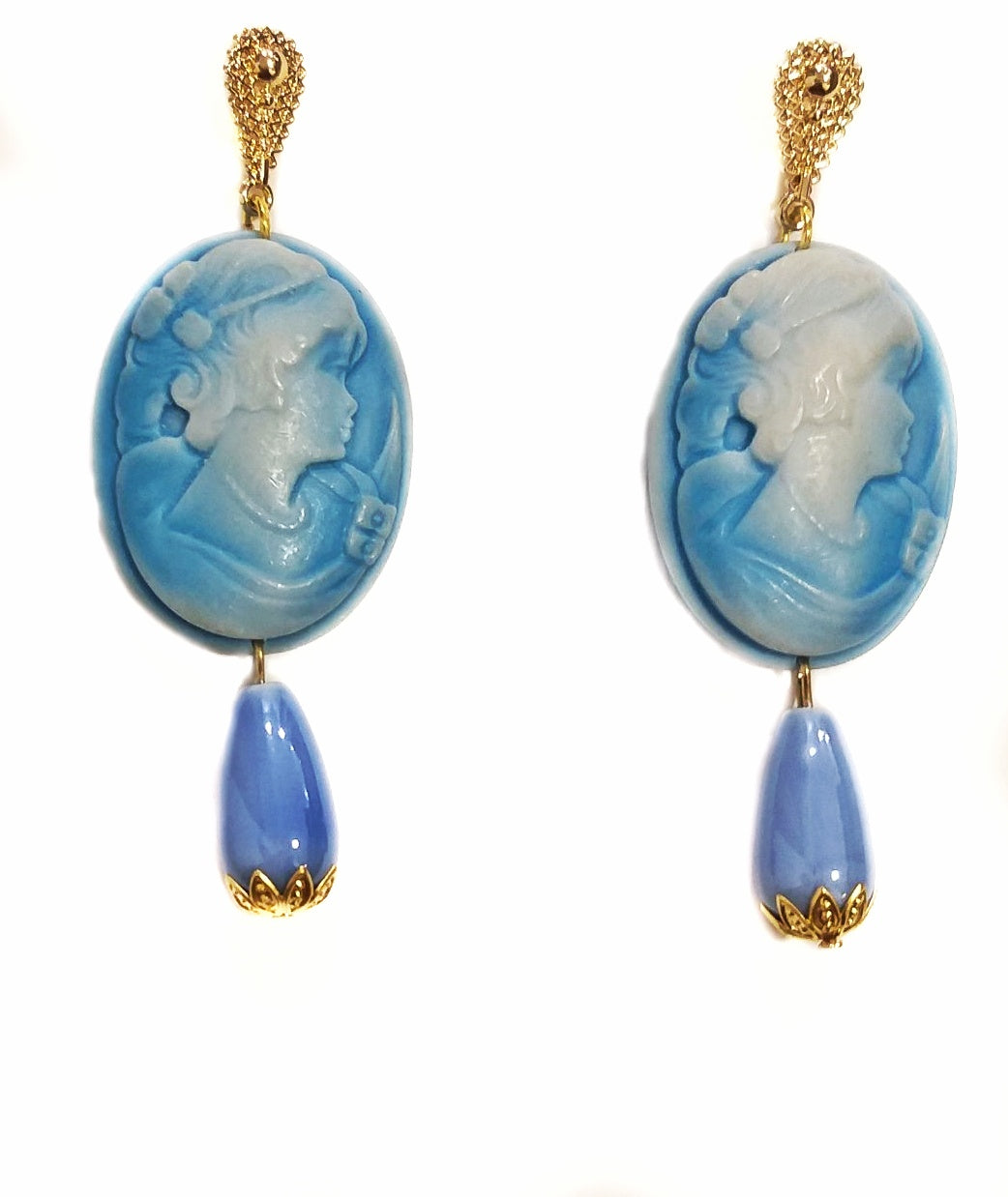 Σκουλαρίκια με καμεο και δάκρυα πορσελάνης