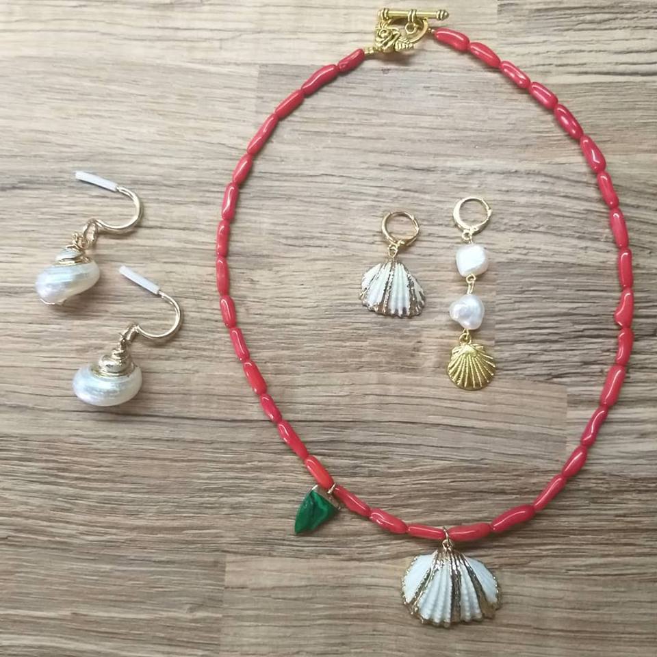 Το παραπάνω σετ αποτελείται από ένα φυσικό επιχρυσωμένο κοχύλι και ένα ατσάλινο επιχρυσωμένο κοχύλι με 2 μαργαριτάρια.